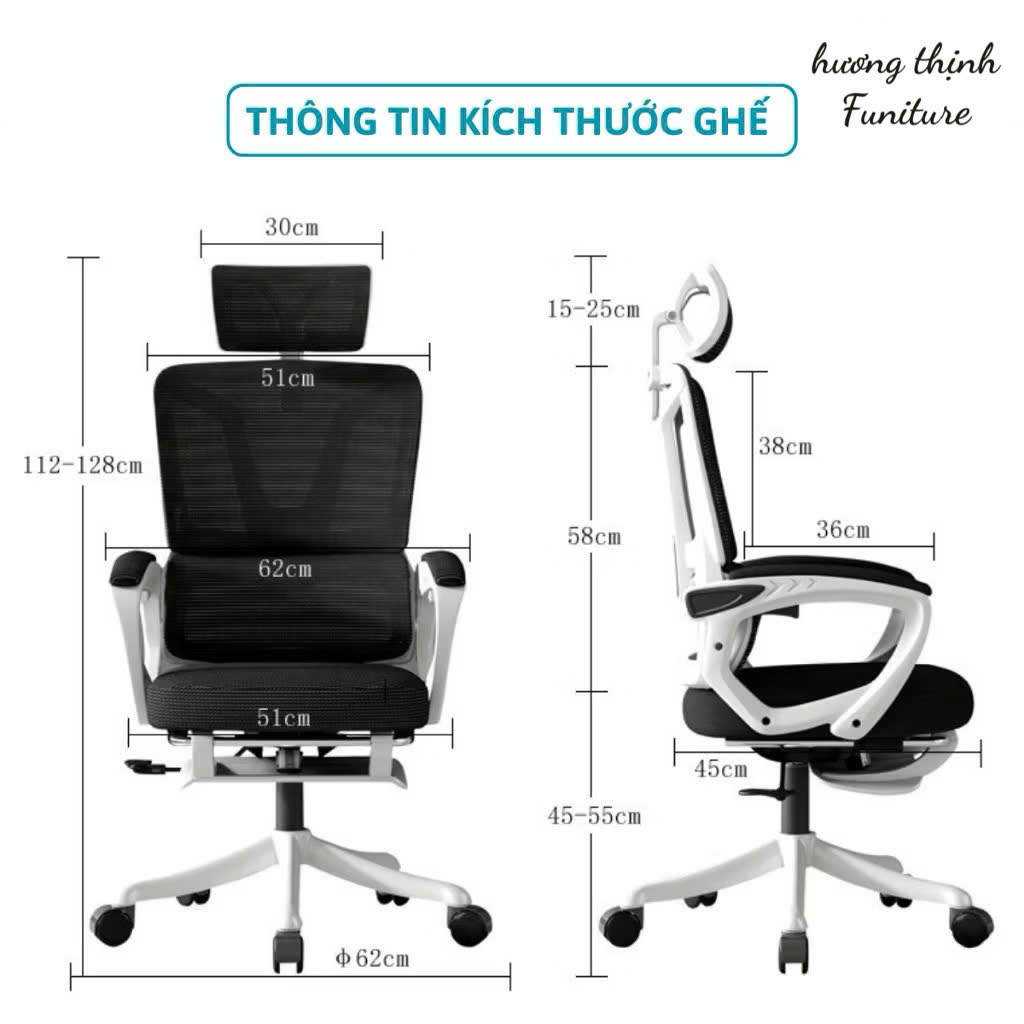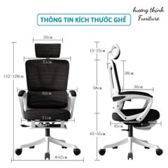 Ghế Công Thái Học Tựa Đầu Đệm Lưới CTH-006 màu Đen